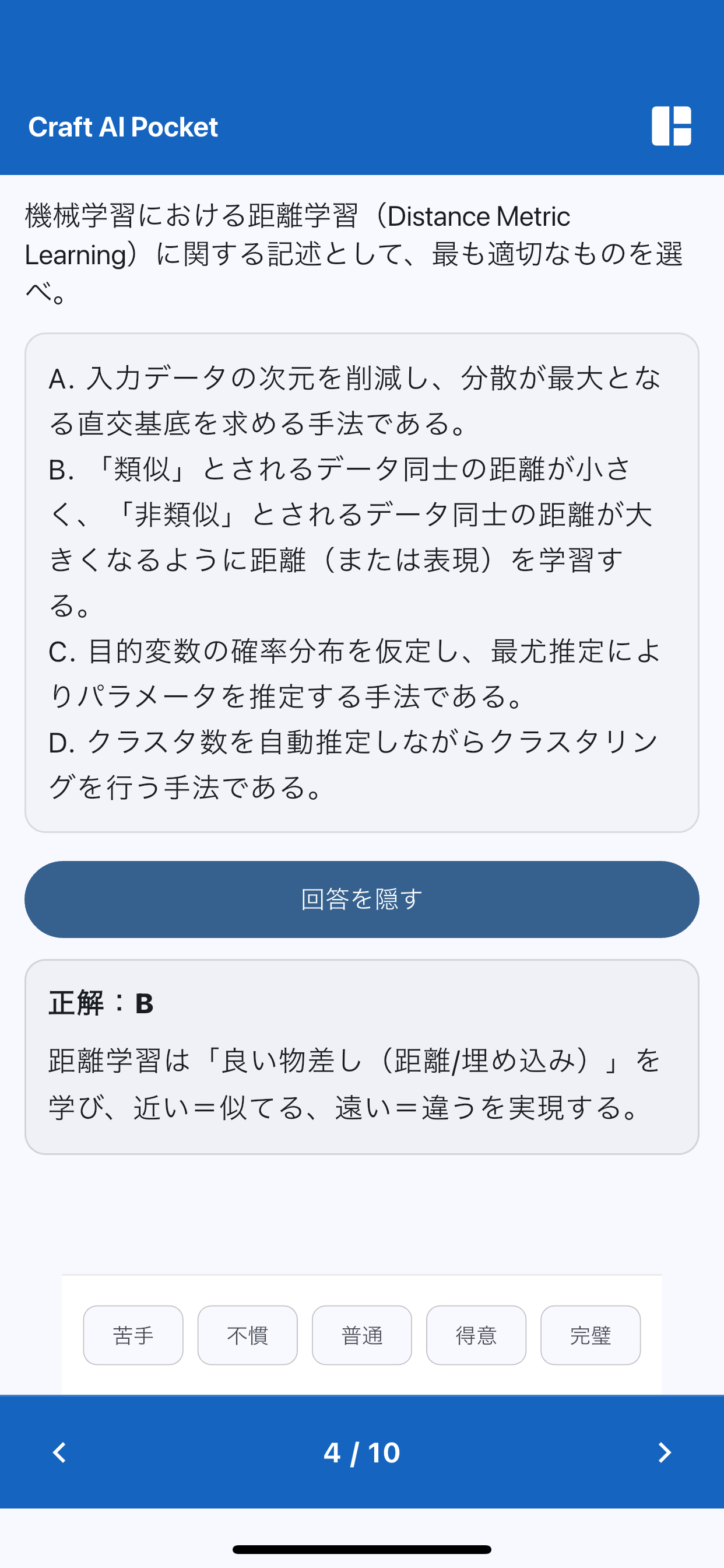 Craft AI ポケットは隙間時間を利用し、AI用語を学習する目的で開発しました。