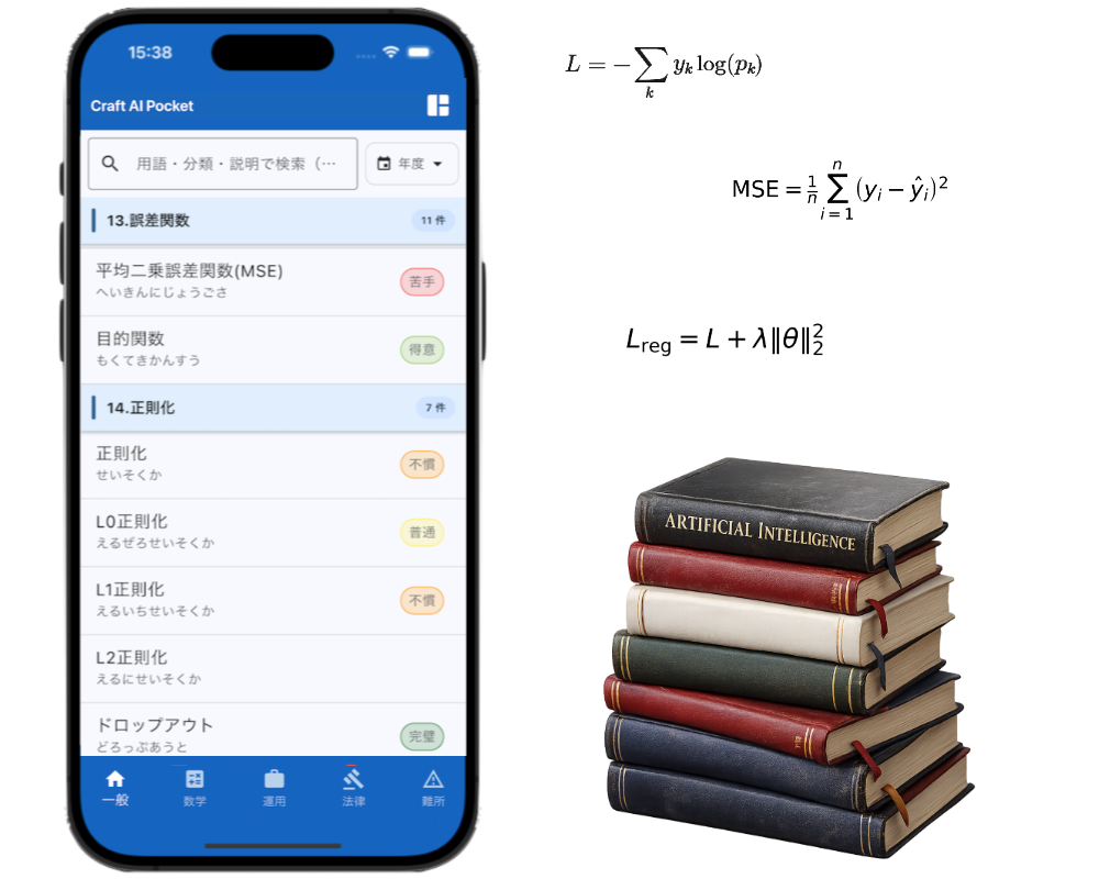 G検定にも対応しており、AI用語を覚えながら検定の合格にも一歩近づく事ができます。